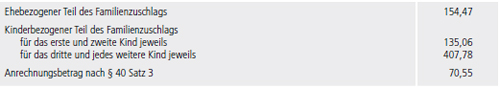 Der kinderbezogene Teil des Familienzuschlags erhöht sich für das erste zu berücksichtigende Kind